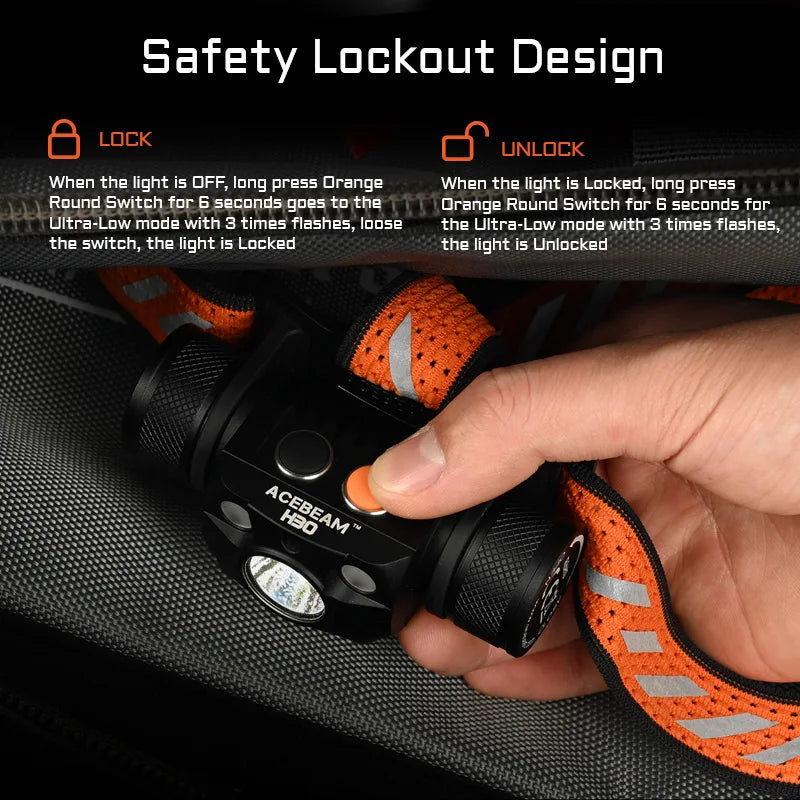 Acebeam H30 Ultra Bright Headlamp 4000 Lumens USB-C Rechargeable Headlight available in RED/GREEN/UV/CRI Aux LED options