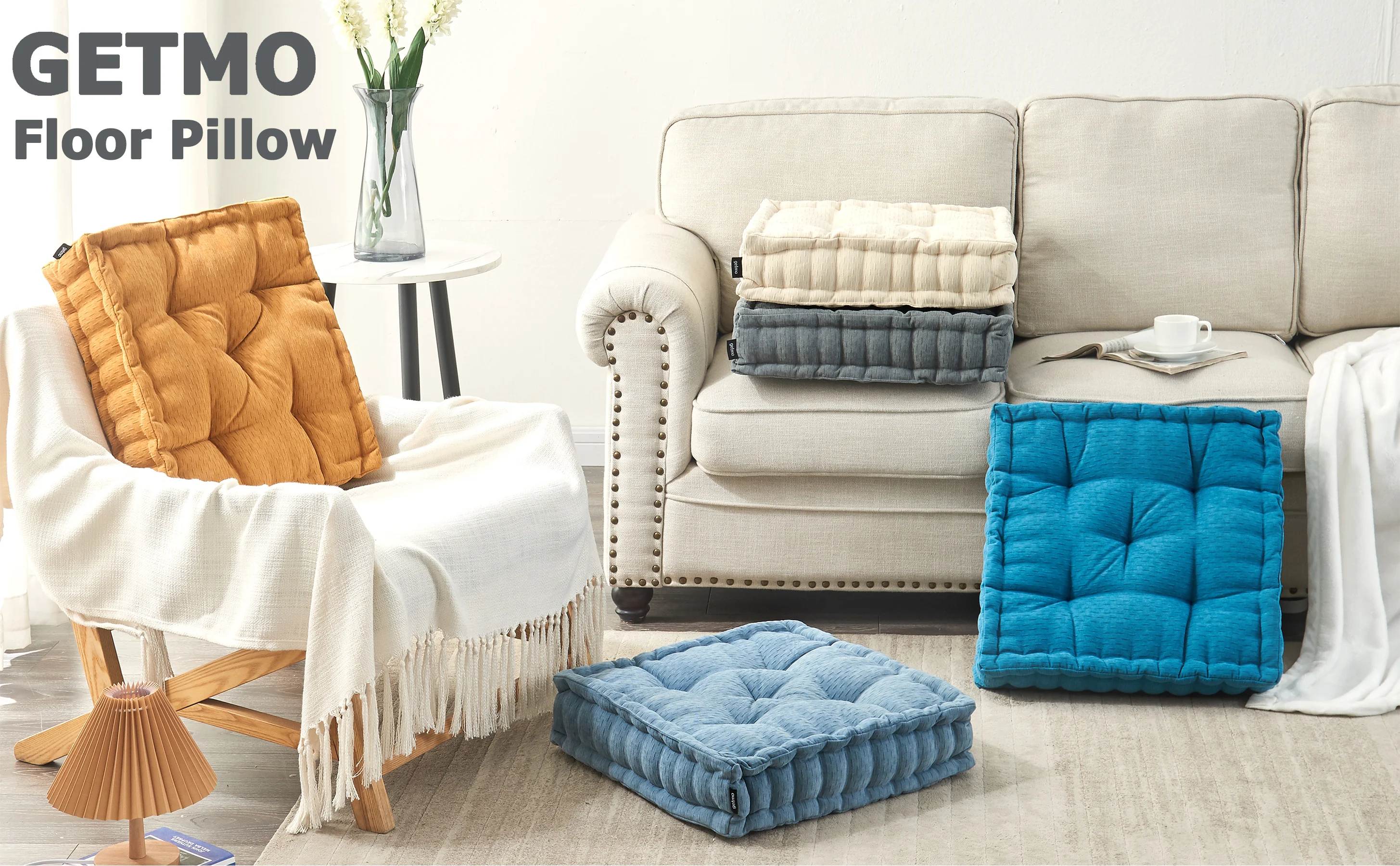 Getmo Resin Meditation Floor Pillow,Square Floor Pillows Seating for Adults,20x20 Inch
